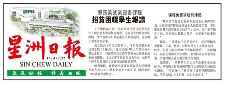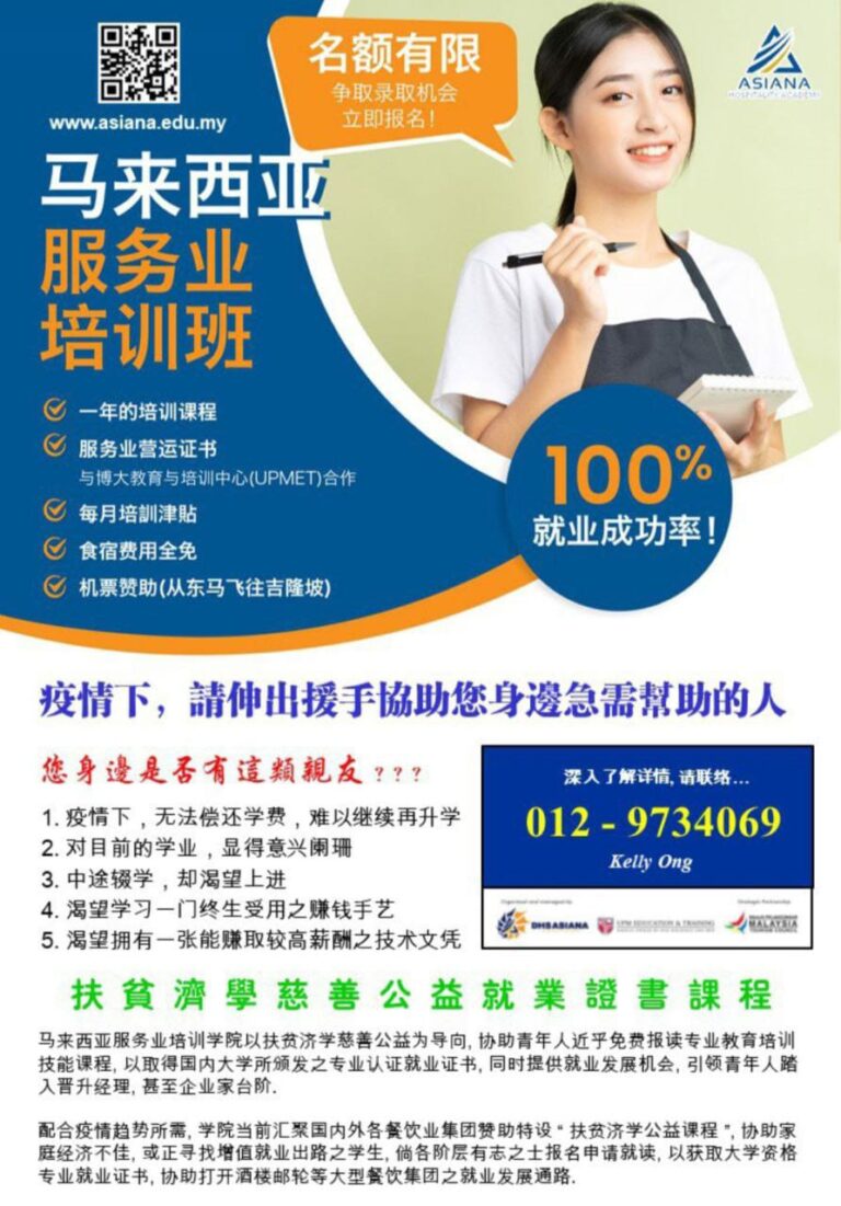 汇聚国内外各餐饮业集团赞助特设 “ 扶贫济学公益课程 ”, 协助家庭经济不佳, 或正寻找增值就业出路之学生, 倘各阶层有志之士报名申请就读, 以获取大学资格专业就业证书, 协助打开酒楼邮轮等大型餐饮集团之就业发展通路.