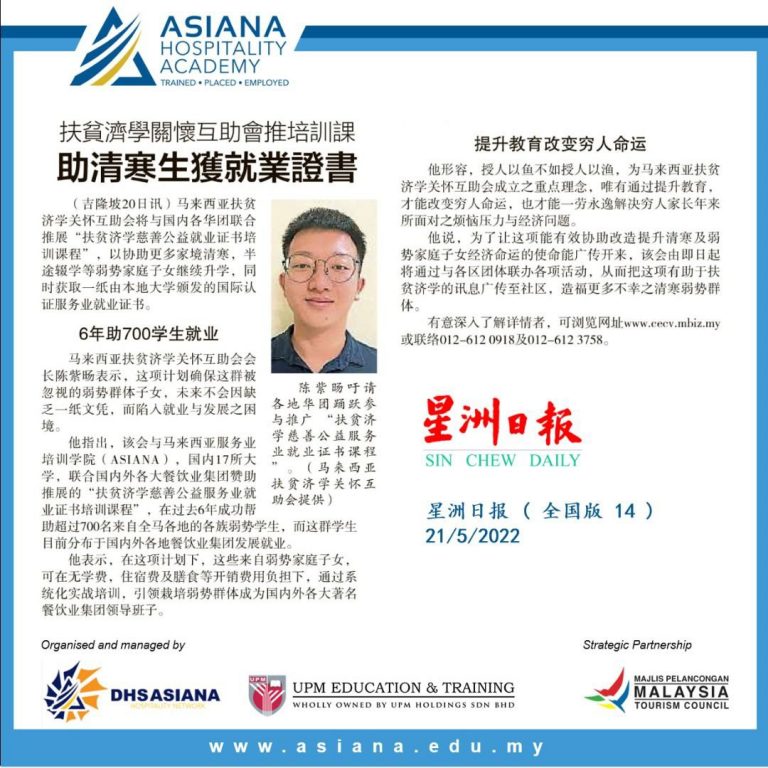 深 入 了 解 详 情 , 敬 请 联 络 012 – 612 0918参与课程 《Join Zoom Meeting 》asiana.edu.my/zoom ( ID: 872 1508 2637 Passcode: 000000 )